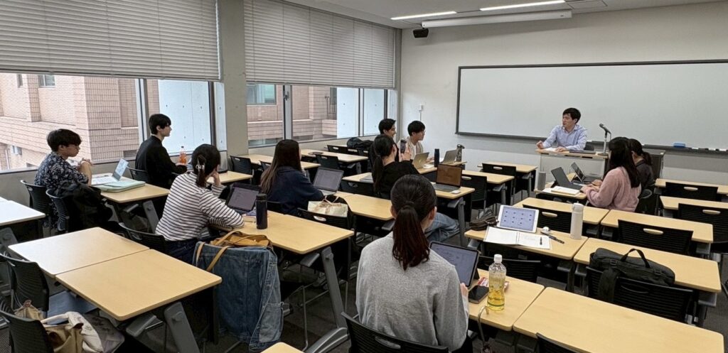 2025年度に新設された研究会で、知的財産法を扱っています。特許法や著作権法だけでなく、意匠法、商標法、不正競争防止法も扱い、知的財産法全体を理解できるようにしています。今年度は裁判例を題材に議論していますが、来年度は来年度で皆さんの興味関心を踏まえながら研究会のやり方や題材を決めていきます。次が2期生になるので、1期生も含めて、一緒に研究会を作っていければと思います。